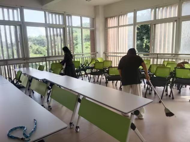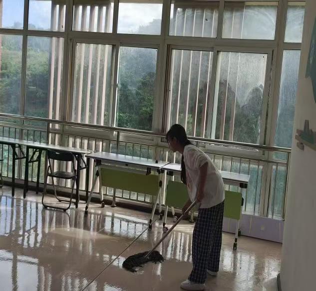 活动当天,参与学生提前集合完毕,在工作室辅导员的统筹安排下,明确分工、有序行动,深入社区开展卫生清扫工作。在公共楼道,学生们手持抹布、扫帚等工具,仔细擦拭楼梯扶手、墙面污渍,认真清扫地面灰尘与杂物,确保楼道环境干净整洁;在活动室,大家分工协作,捡拾散落的垃圾纸屑、清理废弃杂物,同时对座椅进行擦拭消毒,为社区营造舒适的活动空间。整个劳动过程中,同学们热情高涨、相互配合,充分展现了当代大学生的责任与担当,劳动的身影成为社区内一道亮丽的风景线。