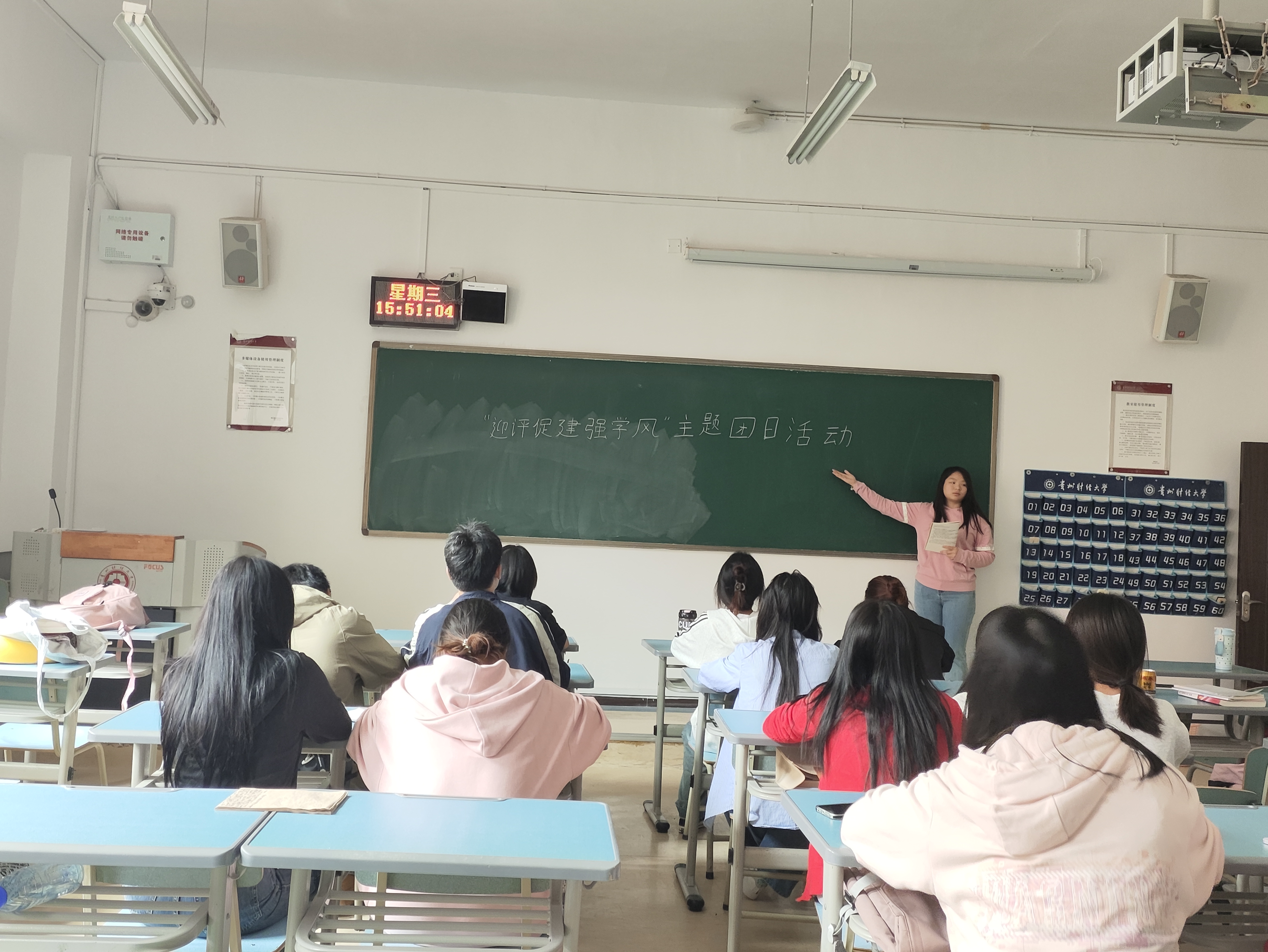 各团支部组织团员青年深入学习评估的相关知识、指标体系及学校迎评工作部署要求。通过专题学习会、知识竞赛、座谈交流等形式,同学们深刻认识到评估是关乎学校长远发展和学生切身利益的大事,进一步明确了自身在迎评工作中的责任与担当,增强了“校兴我荣”的使命感。紧密结合“康旅”专业特色与人才培养目标,各支部围绕如何强化学风展开了热烈讨论。同学们就端正学习态度、遵守课堂纪律、优化学习方法、培养创新精神、提升实践能力等方面建言献策。积极营造勤学、善思、笃行的优良学风,展现康旅学子追求真知、锤炼本领的坚定决心。