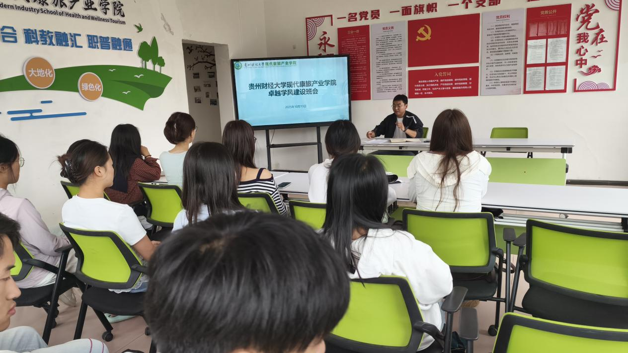 为进一步营造积极向上的班级学习氛围,充分发挥学生骨干的先锋引领作用,凝聚班级学风建设共识,助力本科教学审核评估,10月13日,现代康旅产业学院在海棠苑“一站式”学生社区开展“先锋引领・公约共筑”卓越学风建设主题班会活动,学院领导、辅导员及30余名学生骨干代表参加班会活动。