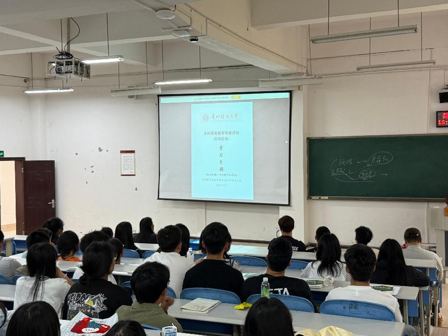 各班级严格按照学院要求,结合班级实际情况,以多样化形式开展主题班会。在“一站式”学生社区的主题班会中,辅导员首先向学生系统解读学校本科教育教学审核评估的重要性,强调审核评估不仅是对学校教学质量的全面检验,更是推动学校人才培养质量提升、助力学生成长成才的重要契机,引导学生从思想上重视、行动上配合。随后,通过 PPT 演示、知识手册发放、重点内容讲解等方式,逐字逐句梳理审核评估应知应会知识点,涵盖学校办学定位、校训校风、历史沿革、学科专业建设、人才培养方案,以及学院康旅相关专业特色、课程体系、实践基地、就业方向等内容,确保学生准确掌握每一项关键信息。