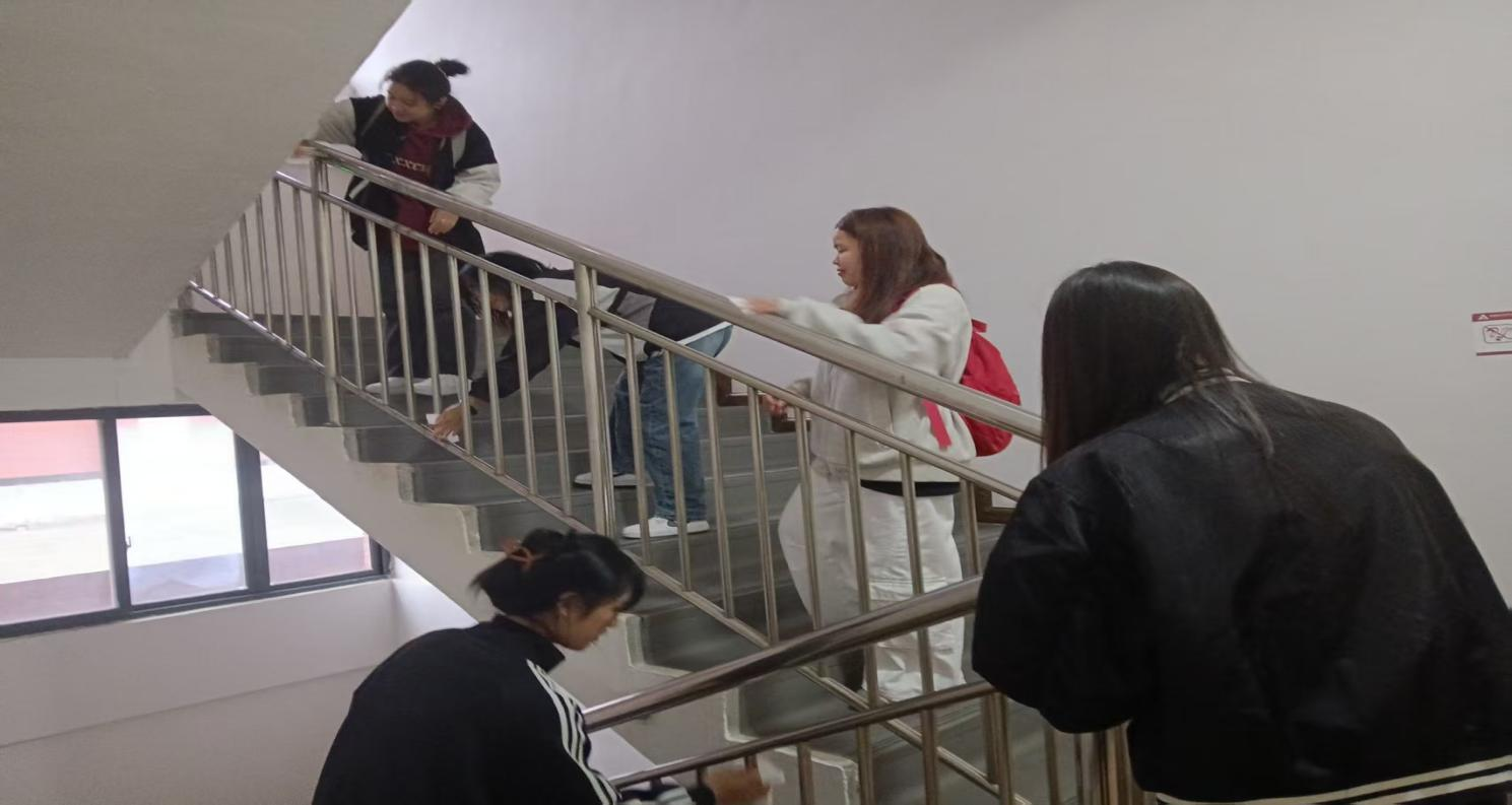 楼梯间里,同学们拿着抹布和纸巾,仔细清理着楼梯台阶和扶手。他们耐心地擦拭着每一处污渍,清扫着每一粒灰尘,让楼梯间变得干净明亮