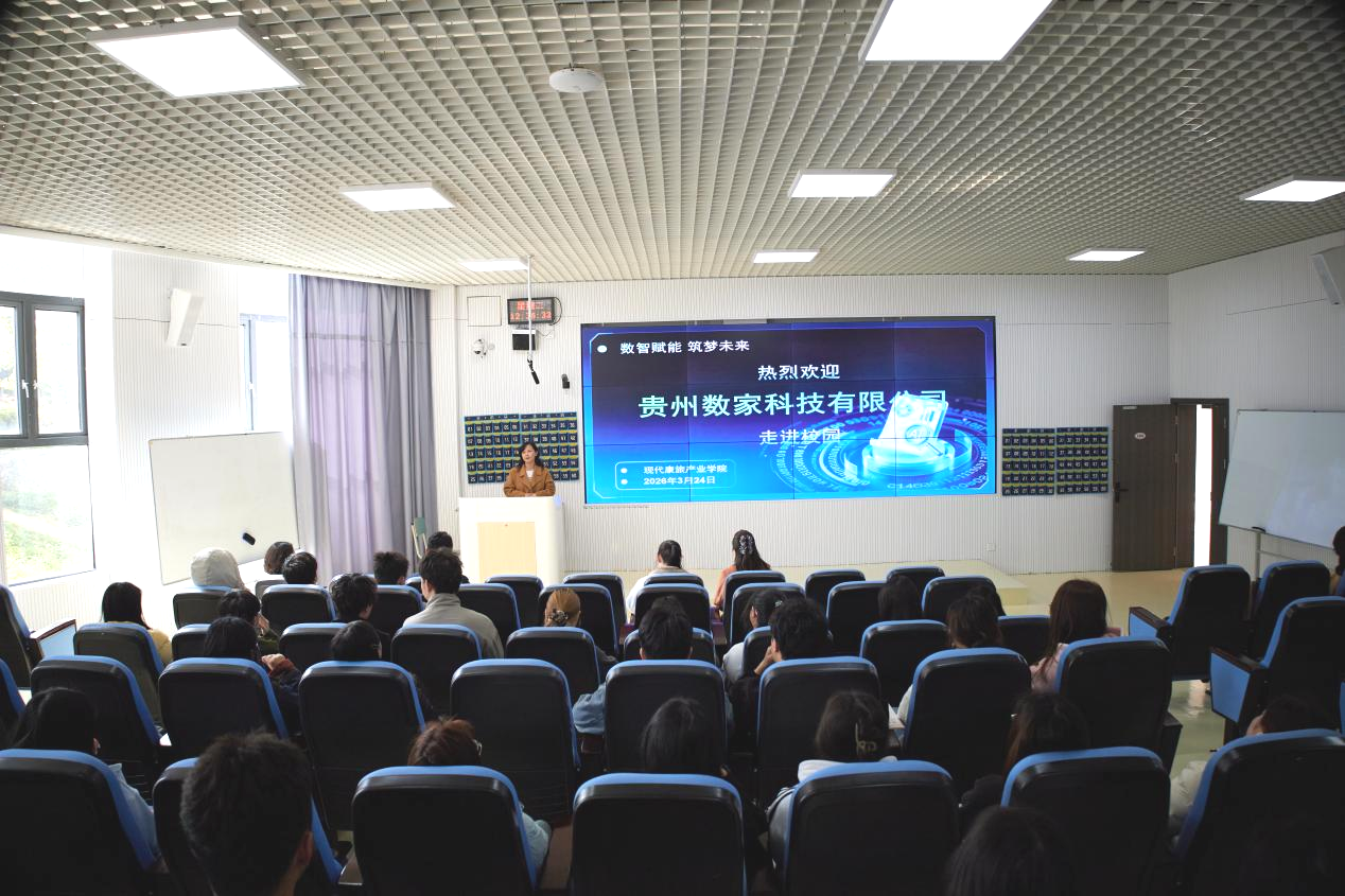 为深化产教融合、校企合作,精准对接行业人才需求,提升学生就业竞争力,3月24日,贵州数家科技有限公司携手贵州深智科技有限公司走进现代康旅产业学院,在进学楼103教室开展专题宣讲会。现代康旅产业学院党委书记张世雄、副院长王超、副书记韩艳、副院长朱靓、实验与实践教学管理科、教务科及2023级部分学生参会。贵州数家科技有限公司AI应用部副总监郑丽娇、科技产品经理戴承洁,以及贵州深智科技有限公司总经理李镭作为企业方代表出席。会议由朱靓主持。