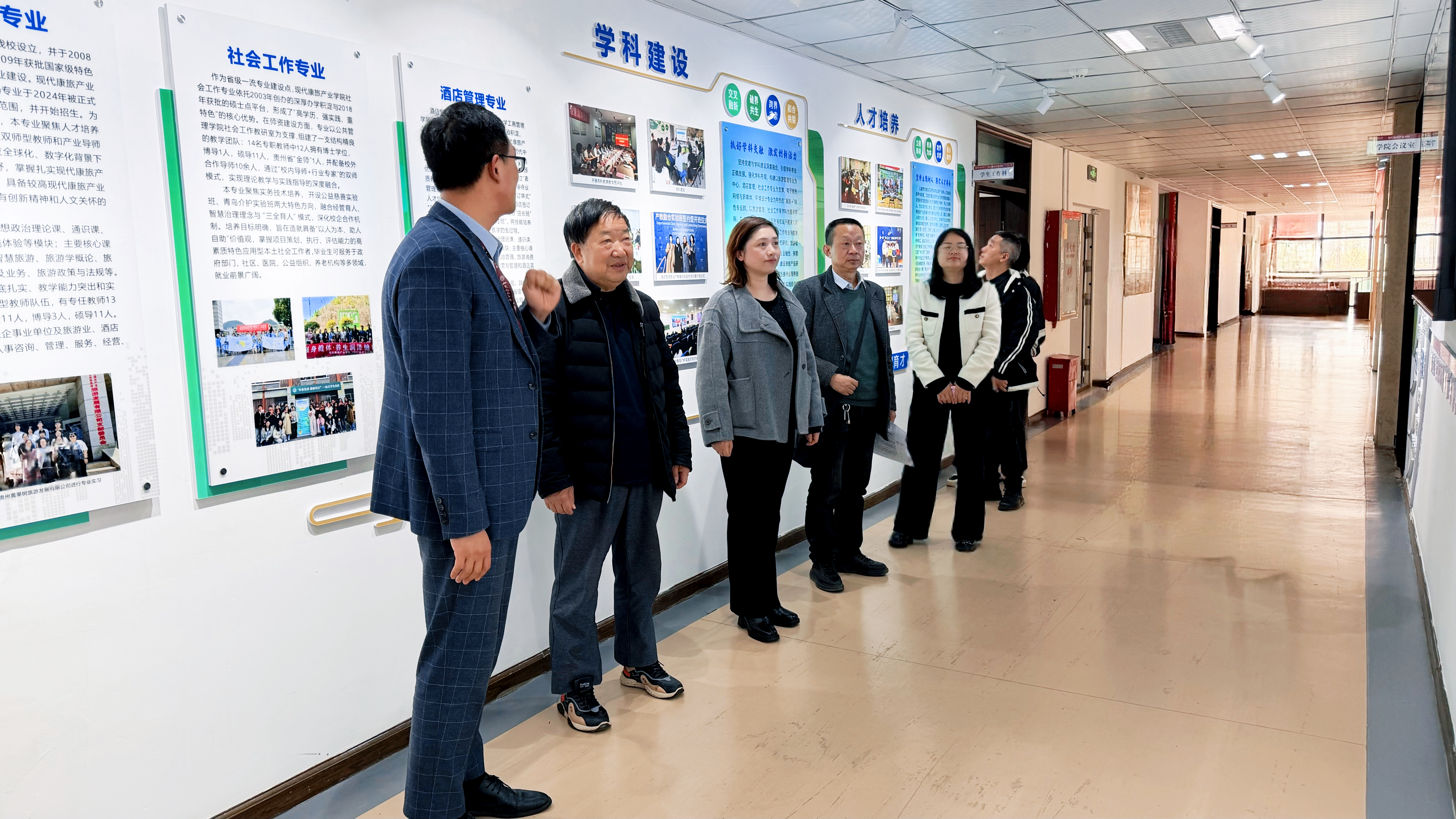 检查过程中,学院关工委负责人韩艳同志围绕领导班子建设、“五老”作用发挥、制度健全执行、探索创新、活动成效五大核心标准,向评审组详细汇报了“五好”关工委创建工作开展情况、特色亮点做法、现存问题与改进思路。会后,王超副院长带领评审小组参观了学院的各项建设并详细向评审专家介绍我院的发展历程以及在对学生的关心关爱中取得的宝贵经验和反思。评审小组成员认真聆听汇报,仔细查阅学院关工委制度文件、工作台账、活动记录、档案资料、荣誉证书等佐证材料,逐一对照评分细则进行现场核查;实地查看学院关工委阵地建设、宣传平台运营、特色品牌项目打造情况,与学院师生代表、参与关工委工作的老同志代表亲切交流,细致了解青年学生思想引领、学业帮扶、“五老”育人实效等工作开展细节。