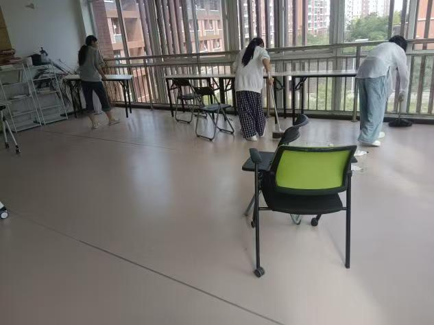 活动当天,参与学生提前集合完毕,在工作室辅导员的统筹安排下,明确分工、有序行动,深入社区开展卫生清扫工作。在公共楼道,学生们手持抹布、扫帚等工具,仔细擦拭楼梯扶手、墙面污渍,认真清扫地面灰尘与杂物,确保楼道环境干净整洁;在活动室,大家分工协作,捡拾散落的垃圾纸屑、清理废弃杂物,同时对座椅进行擦拭消毒,为社区营造舒适的活动空间。整个劳动过程中,同学们热情高涨、相互配合,充分展现了当代大学生的责任与担当,劳动的身影成为社区内一道亮丽的风景线。