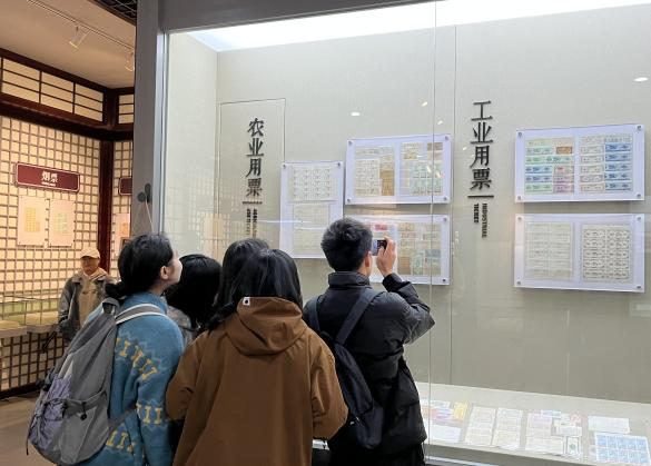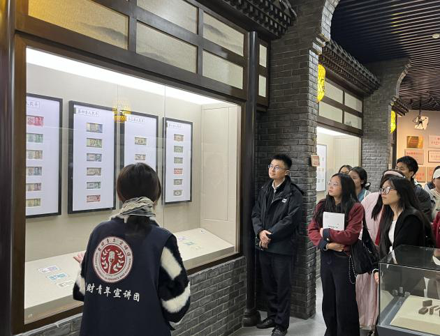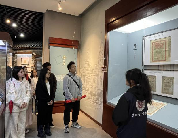 参观过程中,师生们全程专注投入,时而驻足凝视票据上的文字与纹样,俯身观察展品细节;时而提笔记录历史背景与文化价值,轻声交流研学感悟。通过讲解员的专业解读,大家不仅全面梳理了票据从古代到现代的发展脉络,更深刻理解了红色票据承载的革命精神、地方金融票证蕴含的地域文化,为后续探索票据文化与康旅产业的创新融合路径筑牢了知识根基。