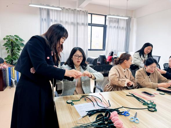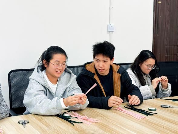 活动伊始,宋沁奕细致讲解扭扭棒花艺的制作技巧,从花瓣塑形到枝叶搭配,逐一示范。师生们围坐一堂,认真聆听,一根根色彩缤纷的扭扭棒在指尖渐渐化作栩栩如生的郁金香。制作过程中,师生之间互相帮助、交流心得,现场欢声笑语不断,洋溢着浓厚的创作热情与融洽氛围。