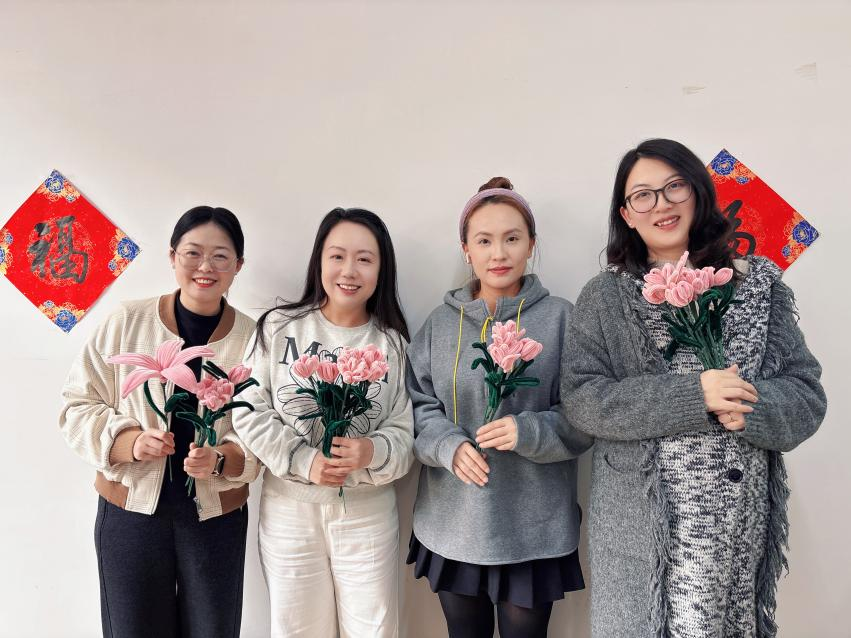 经过精心制作,一束束形态各异、色彩鲜亮的郁金香花束陆续完成。在随后的“花赠恩师”环节中,同学们将自己亲手制作的花束献给在场的老师,以此表达对老师们悉心教导的感激之情。老师接过同学们递上的花束时感动表示:“这份特殊的礼物比鲜花更珍贵,因为它凝聚了同学们的用心与情意。”